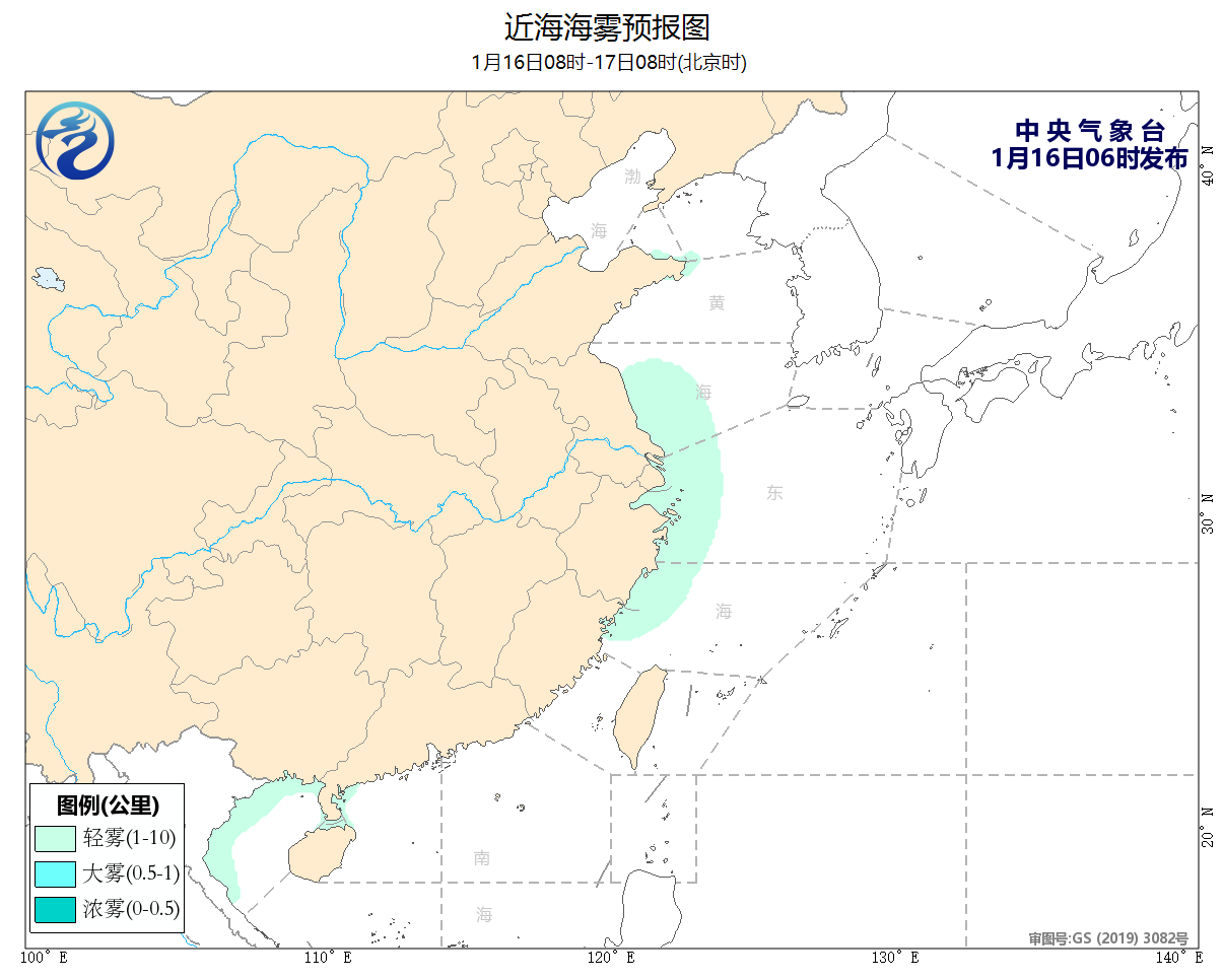 16日08時至17日08時,渤海、渤海海峽、黃海北部和中部海域將有5~7級、陣風8級的偏北到東北風,黃海南部海域、台灣海峽、巴士海峽、南海東北部海域將有4~6級、陣風7級的偏東到東北風。山東半島沿岸海域、黃海西南部海域、東海西部海域、長江口及杭州灣附近海域、舟山群島附近海域、南海西北部海域、瓊州海峽、北部灣北部、雷州半島沿岸海域將有輕霧,能見度不足10公里。