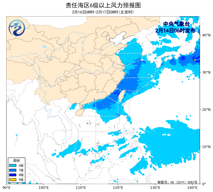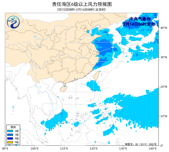 2月13日14時至14日02時,渤海、南海西南部海域出現了5~6級、陣風7級的偏北風,巴士海峽、南海東北部海域出現了5~6級、陣風7級的偏東風。黃海北部和中部海域出現了能見度不足1公里的大霧。