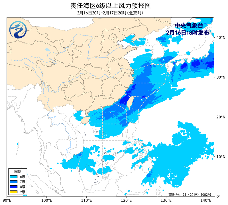 2月16日02時至14時,黃海南部海域、東海北部海域出現了6~7級、陣風8級的偏北風,台灣海峽出現了6~7級、陣風8級的東北風。東海南部、台灣海峽、南海東北部海域、瓊州海峽出現了能見度不足10公里的輕霧。