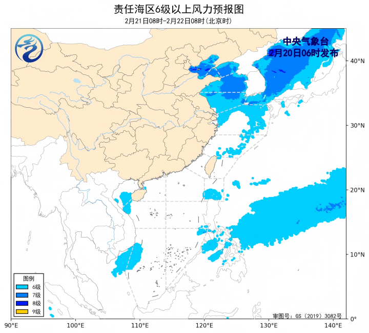 2月19日14時至20日02時,巴士海峽、南海東北部海域、南海中西部和南部海域出現了5~7級、陣風8級的東北風或偏東風。