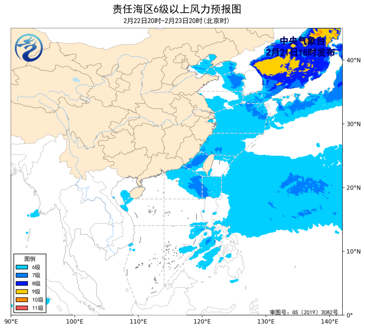 2月21日02時至14時,渤海、南海西南部海域出現了5~6級、陣風7級的東北風或偏北風,黃海大部海域出現了5~6級、陣風7級的偏南風。