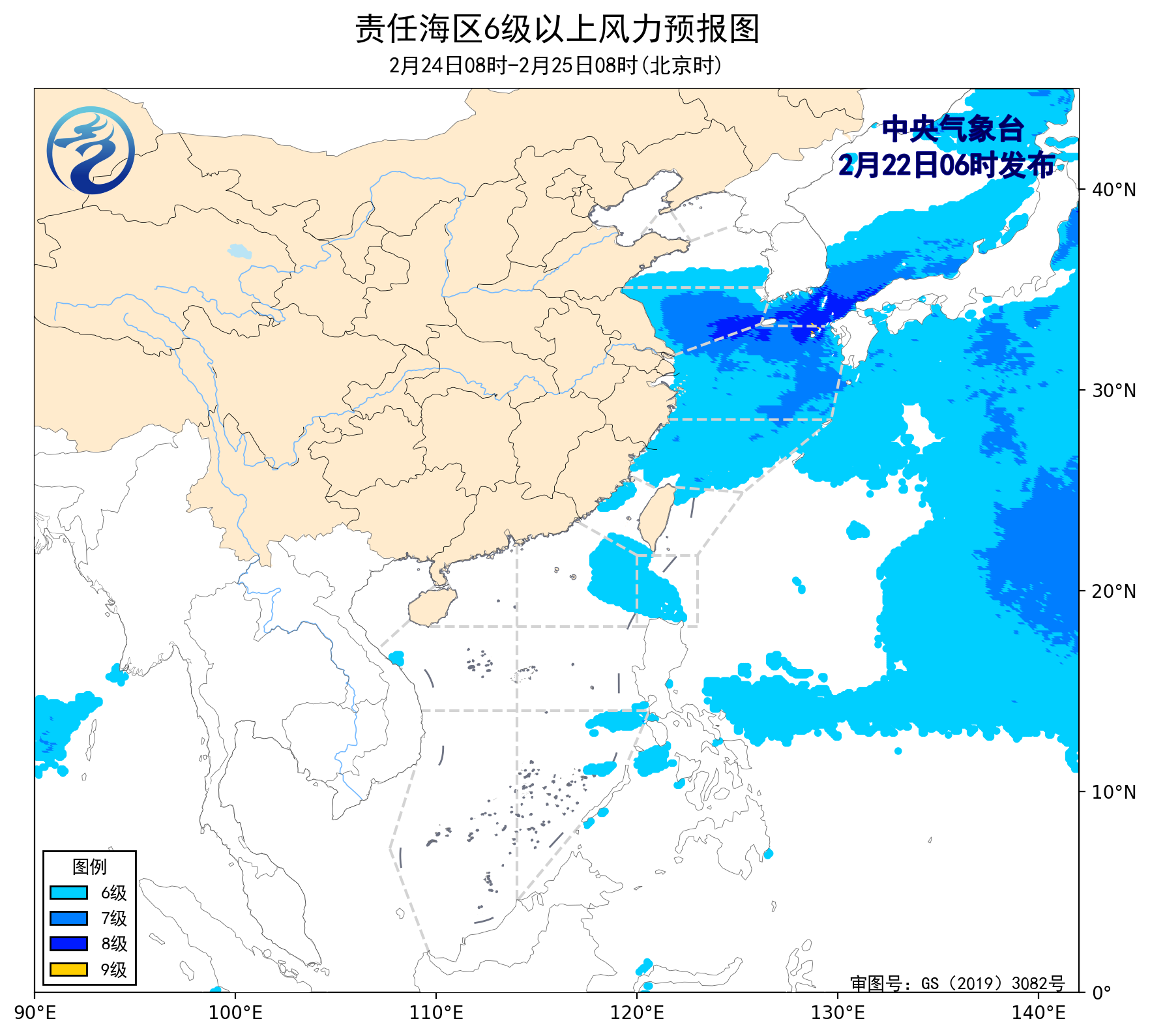 24日08時至25日08時,黃海南部海域將有6~8級、陣風9級的東北風,東海北部海域將有6~7級、陣風8級的東北風,黃海中部海域將有5~6級、陣風7級的偏東到東北風,東海南部海域將有5~6級、陣風7級的偏南轉偏北風,台灣海峽將有5~6級、陣風7級的東南風轉東北風,巴士海峽將有4~6級、陣風7級的偏東到東南風,南海東北部海域將有5~6級、陣風7級減弱到4級以下的東南風。
