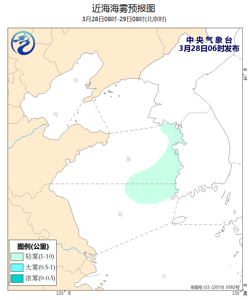 3月27日14時至28日02時,黃海北部和中部海域出現了能見度不足1公里的大霧。