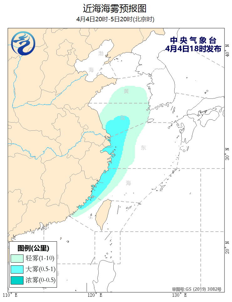 4月4日02時至14時,黃海中部和南部海域出現了5~7級、陣風8級的西北風或偏北風,東海北部海域出現了6~7級、陣風8級的偏西風,東海南部海域、台灣以東洋面出現了6~7級、陣風8級的偏南風。黃海南部海域出現了能見度不足1公里的大霧。