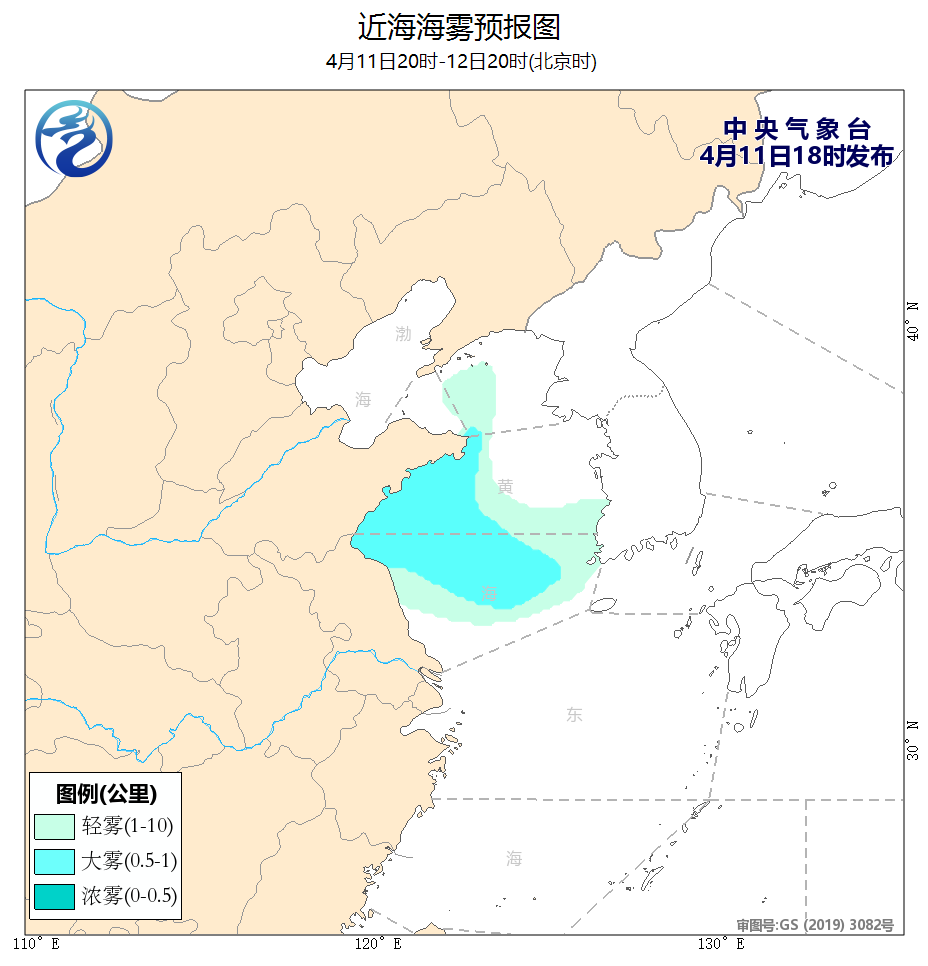 4月11日02時至14時,南海西北部海域、北部灣出現了5~6級、陣風7級的偏南風。黃海北部和南部海域出現了能見度不足1公里的大霧。