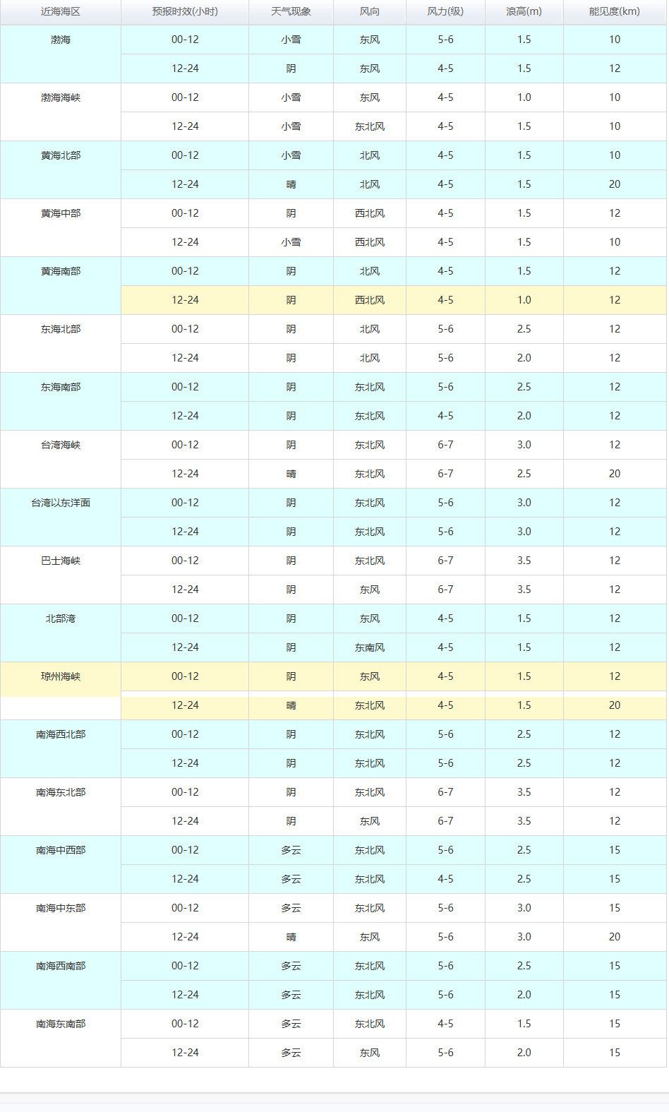 2026年1月28日14時近海海區天氣預報