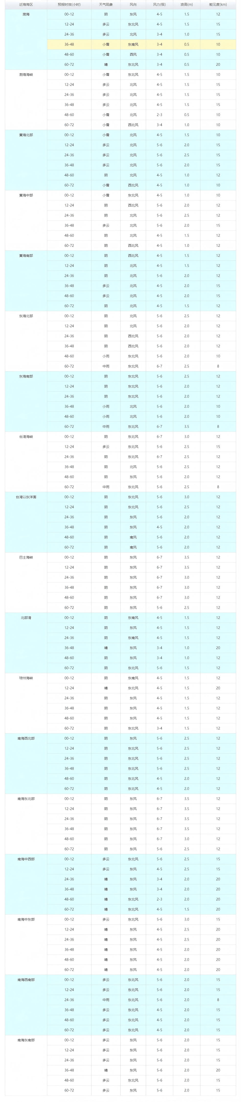 2026年1月28日20時近海海區天氣預報