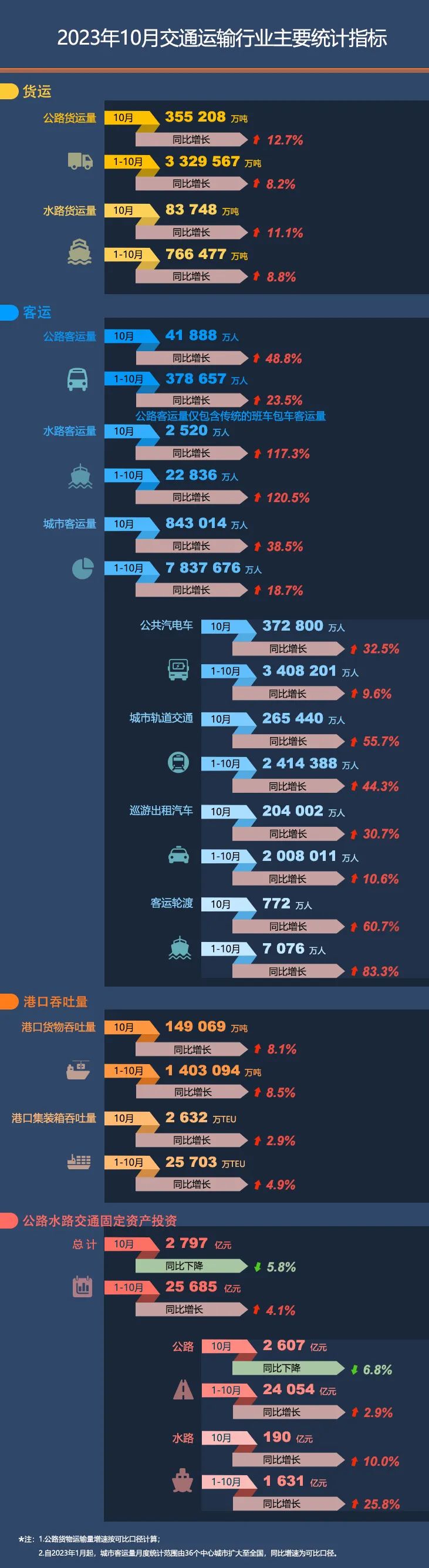 【圖解】2023年10月交通運輸行業主要統計指標