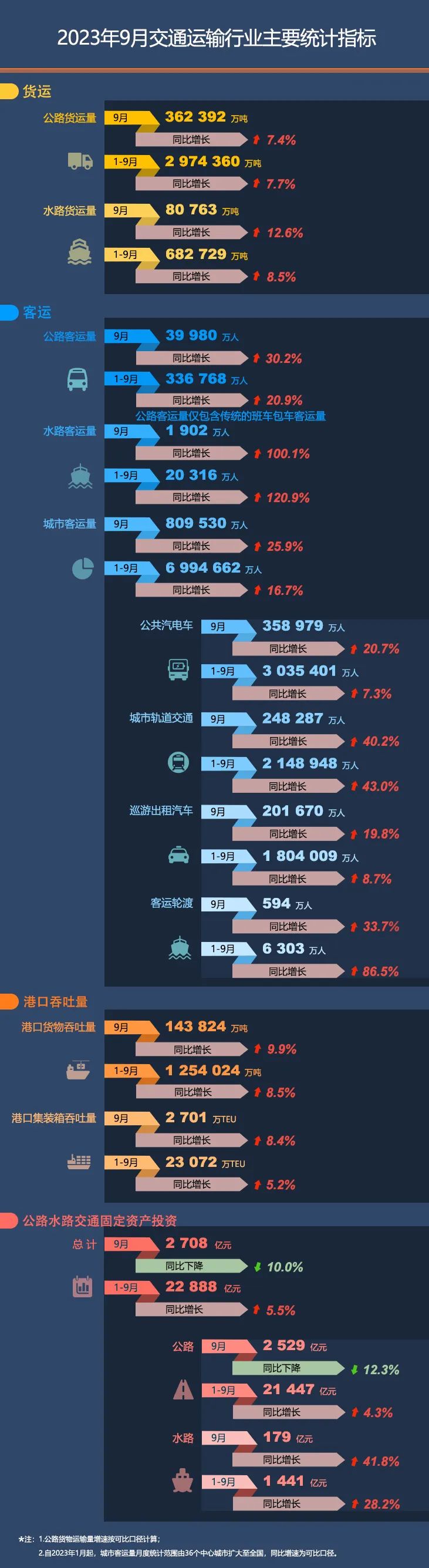 【圖解】2023年9月交通運輸行業主要統計指標