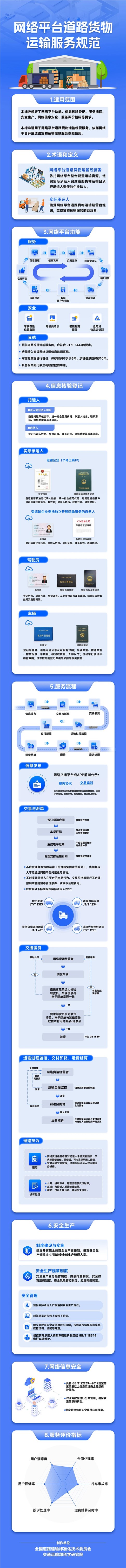 近年來,數字技術與道路貨運深度融合,網路貨運新業態蓬勃發展,網路貨運平臺成為廣大貨車司機承攬運輸業務的重要載體。為規範網路貨運新業態經營行為,引導行業提升服務品質和安全運營水準,交通運輸部組織編制併發布了交通運輸行業標準《網路平臺道路貨物運輸服務規範》(JT/T 1488—2024),于2024年7月1日正式實施。