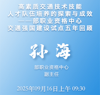 各位網友,大家好!歡迎關注交通運輸部網站線上訪談。今天我們很高興邀請到了交通運輸部職業資格中心副主任孫海同志,請他向大家介紹“高素質交通技術技能人才隊伍培養”交通強國建設試點相關情況。孫主任,您好!