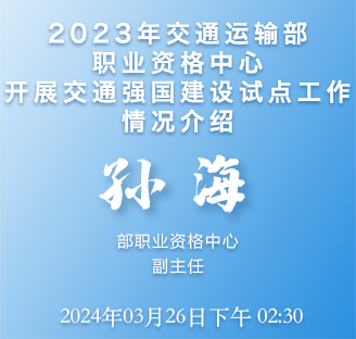 各位網友,大家好!歡迎關注交通運輸部網站線上訪談欄目。本期訪談我們邀請到交通運輸部職業資格中心副主任孫海同志,為我們介紹2023年中心開展交通強國建設試點工作的有關情況。孫副主任,歡迎您。