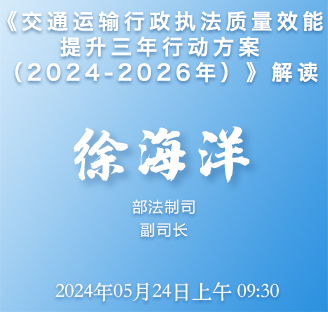 各位網友,大家好!本期訪談,我們邀請到部法制司徐海洋副司長為大家介紹《交通運輸行政執法品質效能提升三年行動方案(2024-2026年)》(以下簡稱《行動方案》)制定出臺情況。