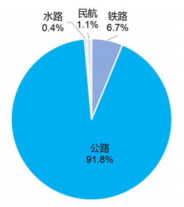 圖5 2024年營業性貨運量構成(按運輸方式分)
