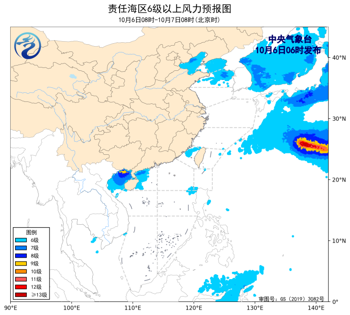 6日08時至7日08時,北部灣將有7~8級、陣風9級的偏南風減弱到5~6級、陣風7級的東南風,渤海將有4~6級、陣風7級的東北風到偏北風,瓊州海峽、南海西北部海域將有4~6級、陣風7級的偏東到東南風,黃海北部和中部海域將有5~6級、陣風7級的偏東到東北風。6日08時至20時,北部灣北部海域、海南島西北部沿岸海域、雷州半島沿岸海域、廣西南部沿岸海域將有8~10級的雷暴大風。