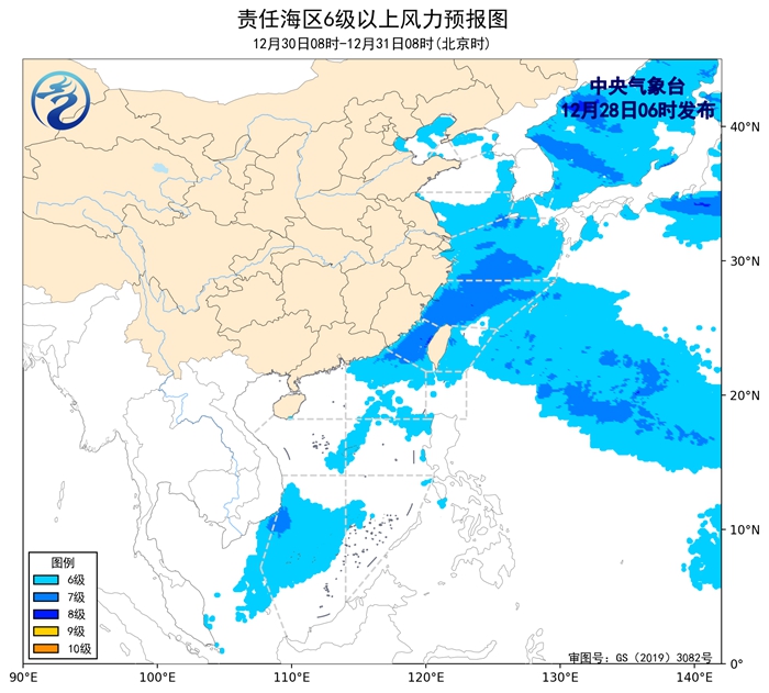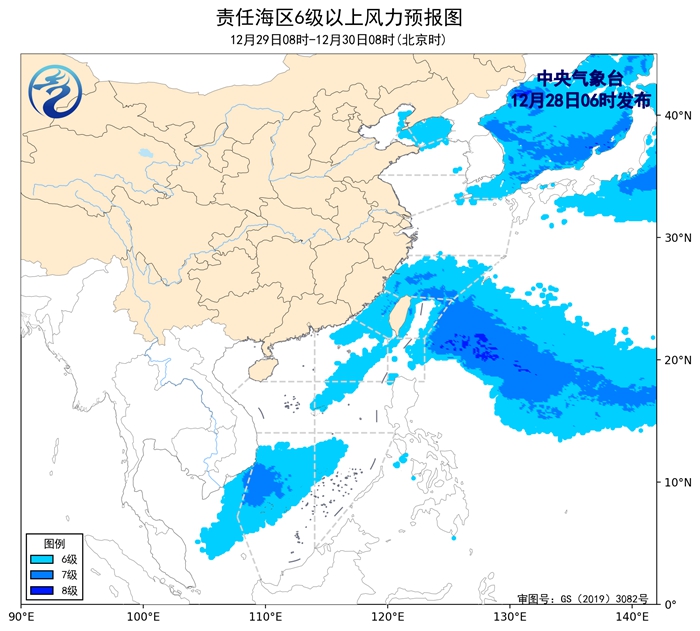 28日08時至29日08時,南海西南部海域將有6~7級、陣風8級的東北風,渤海、渤海海峽、黃海北部海域將有4~6級、陣風7級的西南風轉偏北風,黃海中部海域將有4~6級、陣風7級的西南風到偏西風,台灣海峽、台灣以東洋面、巴士海峽、南海東部和中西部海域將有4~6級、陣風7級的偏北到東北風,東海南部海域將有5~6級、陣風7級的東北風到偏東風。