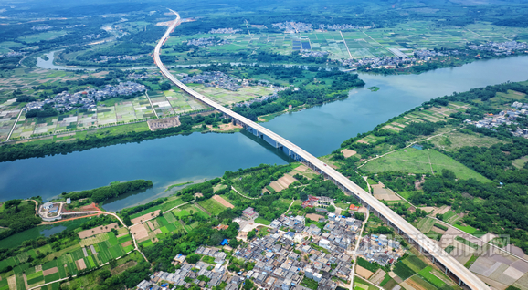 近日,海南文臨高速公路定安至澄邁段南渡江特大橋橋梁工程建設全部完工(如圖),正在進行路面工程建設。