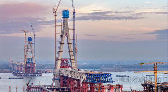 安徽池州長江公鐵大橋工程建設穩步推進,目前二標段主體工程已完成80%,南主塔正在進行第39節混凝土澆築施工,預計2026年春節前實現主塔封頂。