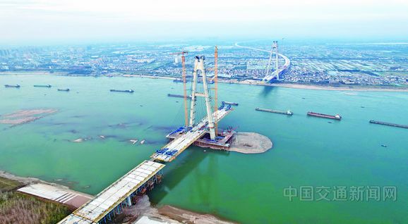 日前,湖北當陽經枝江至松滋高速公路枝江長江大橋施工現場一派繁忙景象。目前,南北兩岸主橋段同步推進,整體進度已過半,全體建設者正穩步推進剩餘梁段與斜拉索安裝工作。