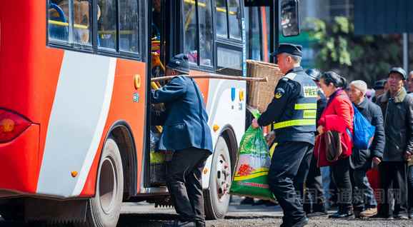 圖為菜農們有序上車。