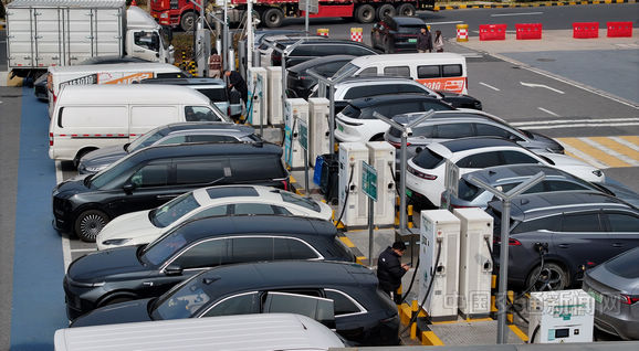 春運啟動,滬杭高速公路浙江嘉興服務區在配備87把快速充電槍的基礎上,增配移動充電機器人進行應急充電,保障新能源汽車充電需求。