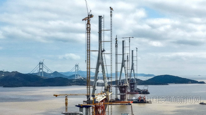 日前,位於浙江省舟山市普陀區的青龍門大橋建設現場,三塔矗立,Q4號主塔的兩榀鋼箱梁正在進行吊裝作業。青龍門大橋是寧波舟山港六橫公路大橋二期工程的“咽喉”工程,項目全部建成並通車後,梅山、六橫及佛渡將結束不通高速公路的歷史。