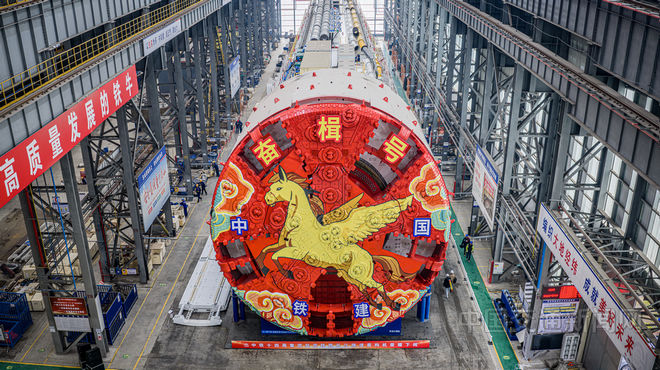 3月31日,由我國自主研製的超大直徑盾構機“奮楫號”在江蘇南通順利下線,將用於鹽宜高鐵長江隧道工程,開啟穿越長江天塹之旅。