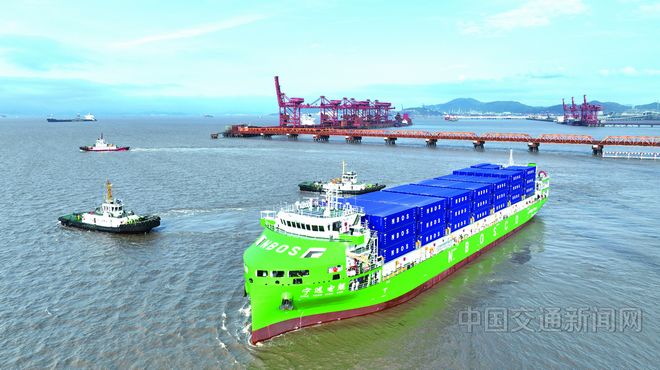 4月15日,我國首艘萬噸級純電動智慧集裝箱船“寧遠電鯤”輪從浙江寧波舟山港北侖港區解纜啟航,駛向嘉興港乍浦港區,投入商業航線運營。這標誌著我國沿海集裝箱運輸開啟純電驅動、智慧領航的全新探索發展階段。