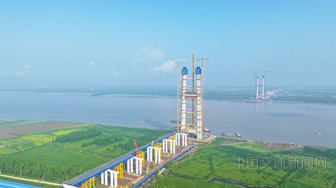 4月24日,湖北武漢都市圈環線高速公路重點控制性工程——漢南長江大橋南岸主塔中橫樑混凝土澆築順利完成,工程建設穩步推進。