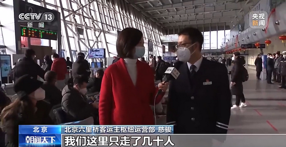 北京六里橋客運主樞紐運營部 慈駿:前年(2021年)春運首日的時候,我們這裡只走了幾十人,當時大廳裏空蕩蕩的。我覺得現在一切都在好轉中。
