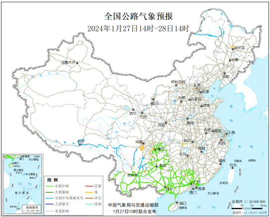 圖3 全國公路氣象預報圖(1月27日14時-28日14時)