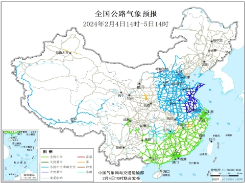 圖3 全國公路氣象預報圖(2月4日14時-5日14時)