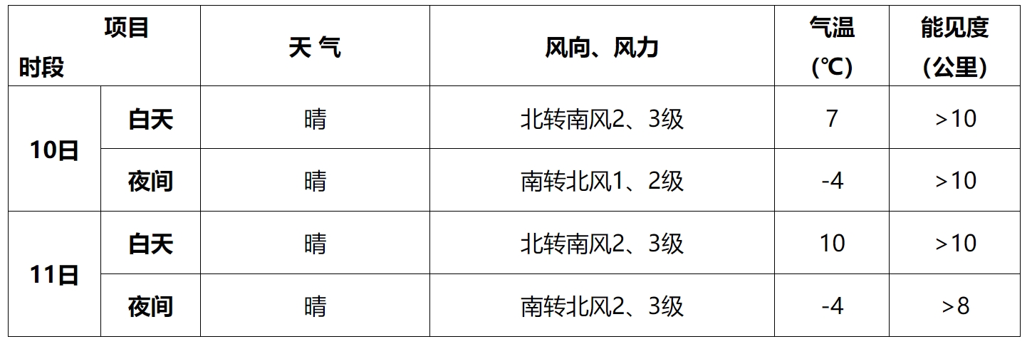 10日中午至11日中午,全國大部機場適航(見附件2);11日淩晨至早間,雙流、天府、武漢、合肥、南京、青島等機場有霧,哈爾濱、長春、瀋陽、大連、青島、西安等機場有霜。