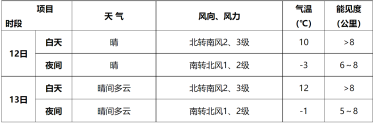預計,2月12日至13日北京地區天氣以晴為主,風力不大;能見度有所下降,夜間最低能見度5~8公里;白天最高氣溫10~12℃左右,夜間最低氣溫-3~-1℃。