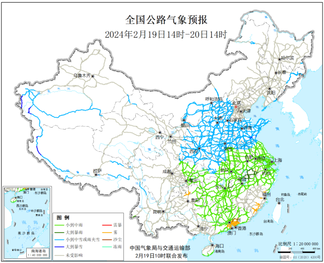 圖3 全國公路氣象預報圖(2月19日14時-20日14時)