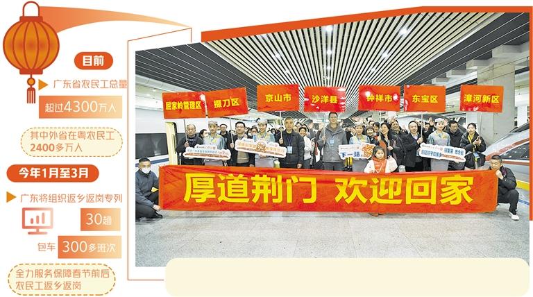 春節前後,回鄉團圓、返崗就業是農民工心頭的兩件大事。近年來,廣東省持續實施“南粵春暖”行動,將其打造成春節前後服務在粵務工人員返鄉團聚和回粵就業的重要品牌。