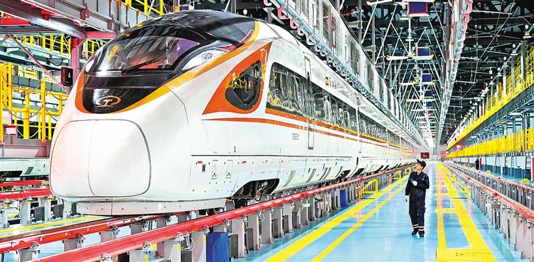 系統全面整體領先。2017年2月25日10時33分,G65次列車駛出北京西站,運作于京廣高鐵,標誌著中國自行設計研製的、擁有全面自主智慧財産權的中國標準動車組樣車正式上線運營。同年6月25日,中國標準動車組被正式命名為“復興號”。“復興號”中國標準動車組的誕生和運營,標誌著中國高鐵邁出了“從追趕到領跑”的關鍵一步,我國鐵路技術裝備製造迎來了一個新時代。