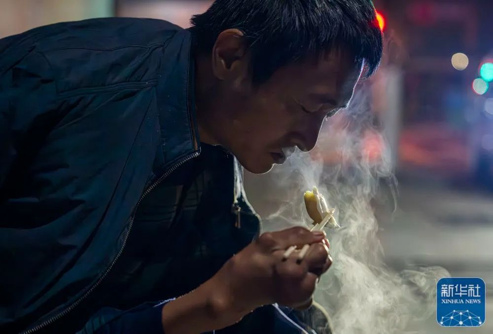 1月12日晚,孔令建在杭州蕭山區路邊停靠等待拉貨時吃妻子和老鄉們包的餃子。