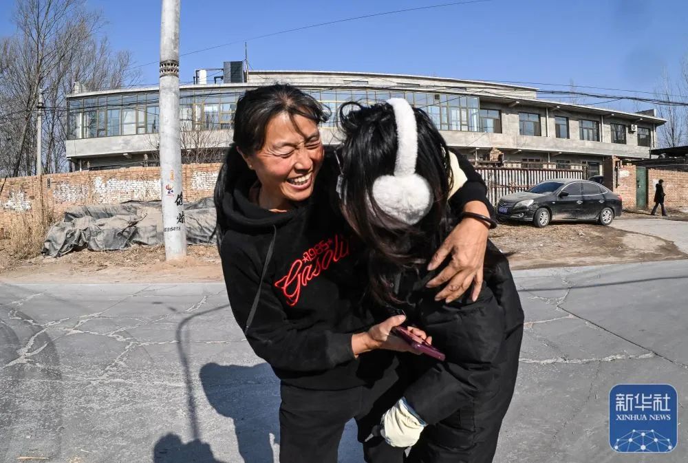 1月20日中午,孔令建的小女兒到村口迎接,與王艷青相擁。