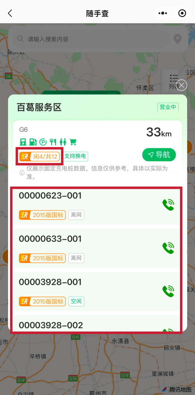 提前查看附近服務區的充電情況。