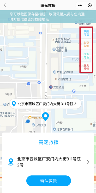 救援電話、收費政策等資訊