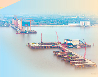 杭州灣跨海鐵路大橋1—12號橋墩施工現場。