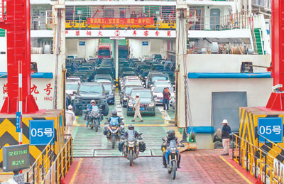 為避免造成擁堵,多部門和輪渡企業多措並舉,在距出境區5公里的地方設置查驗點,提前購票、距離開船不超過兩小時的車輛,徑直通過閘機檢票後,駛往進港待渡區域。不符合通行條件的車輛駛入專用通道離開。