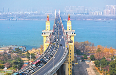 2月4日,春節假期的最後一天,南京長江大橋迎來返程車流高峰。