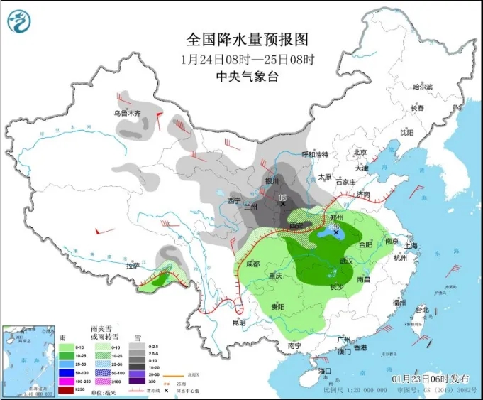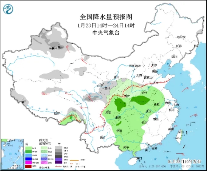 圖1 全國降水量預報圖(1月23日14時至24日08時)