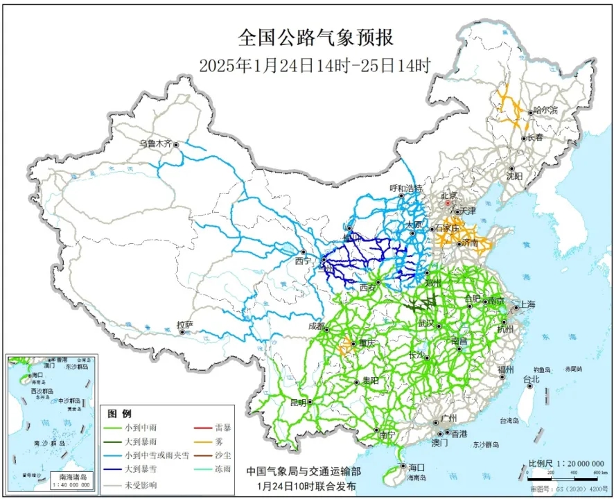 圖4 全國公路氣象預報圖(1月24日14時至25日14時)