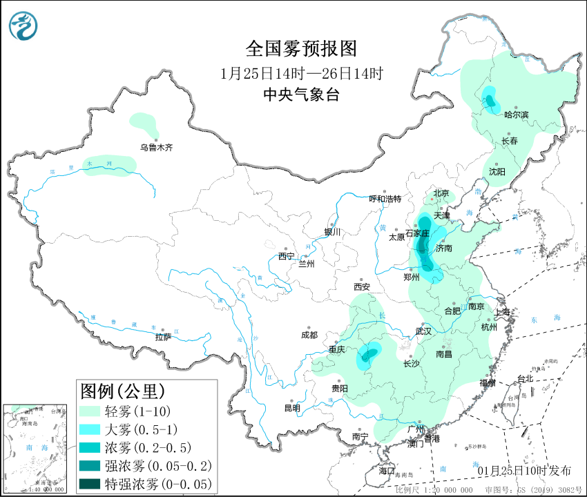 圖1 全國霧預報圖(1月25日14時-26日14時)