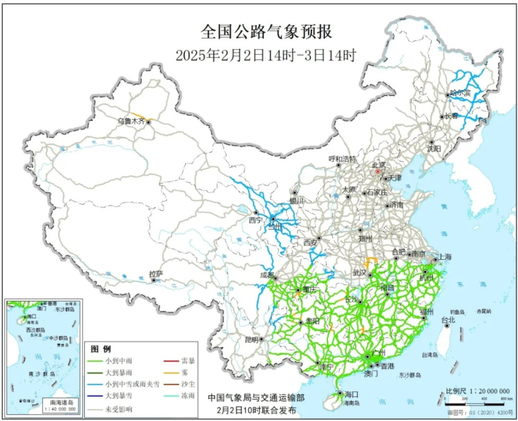 圖4 全國公路氣象預報圖(2月2日14時至3日14時)