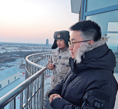 飛機衝破雲層,舷窗外躍出一片雪白。艙門開啟,零下30攝氏度,朔風裹挾雪粒迎面撲來。時值“四九”,我來到祖國陸地版圖最東端的黑龍江黑瞎子島,探訪北部戰區某邊防連“東方第一哨”。