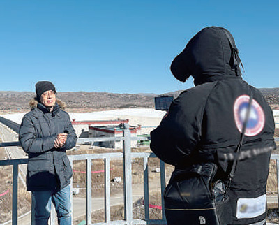 谷業凱(左)在海子山高海拔宇宙線觀測站“拉索”採訪。